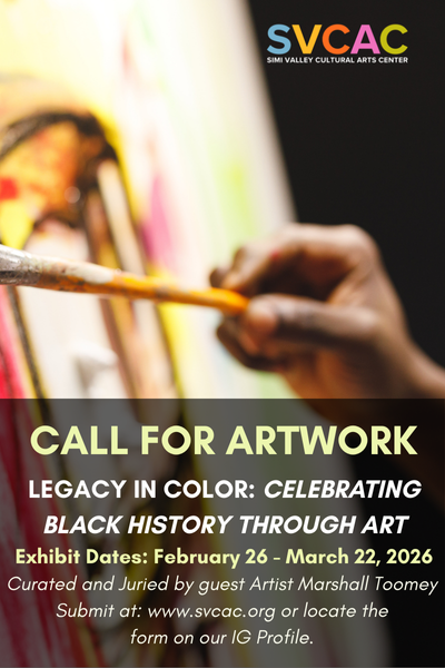 The Simi Valley Cultural Arts Center proudly invites Black artists to submit up to five (5) two-dimensional artworks for inclusion in our 2026 Black History Month exhibition, Legacy in Color: Celebrating Black History Through Art. This exhibition honors the richness, resilience, and creativity of Black culture—past, present, and future—through visual storytelling and artistic expression.